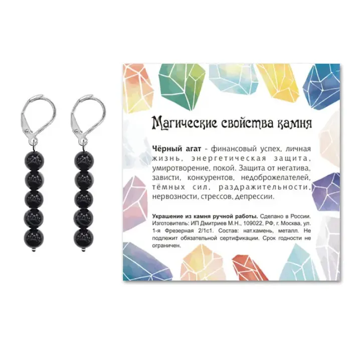- Изготовлены из высококачественного натурального камня Чёрный агат, который традиционно ценится за свои защитные свойства.