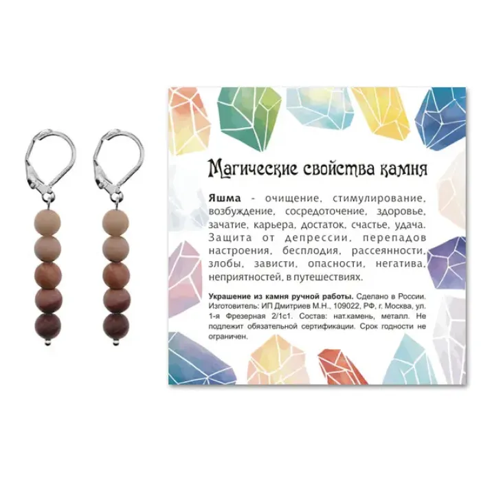 5. Упаковка: серьги поставляются в прозрачном пакете с подвесом и вкладышем с описанием значения камня, что делает их отличным подарком.