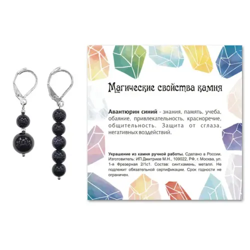 - Упаковка включает прозрачный пакет с подвесом и вкладыш с описанием значения камня, что делает эти серьги отличным подарком или сувениром.