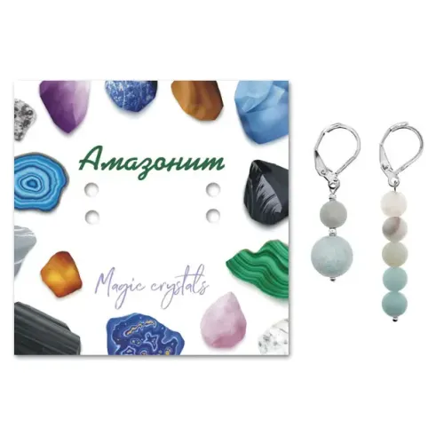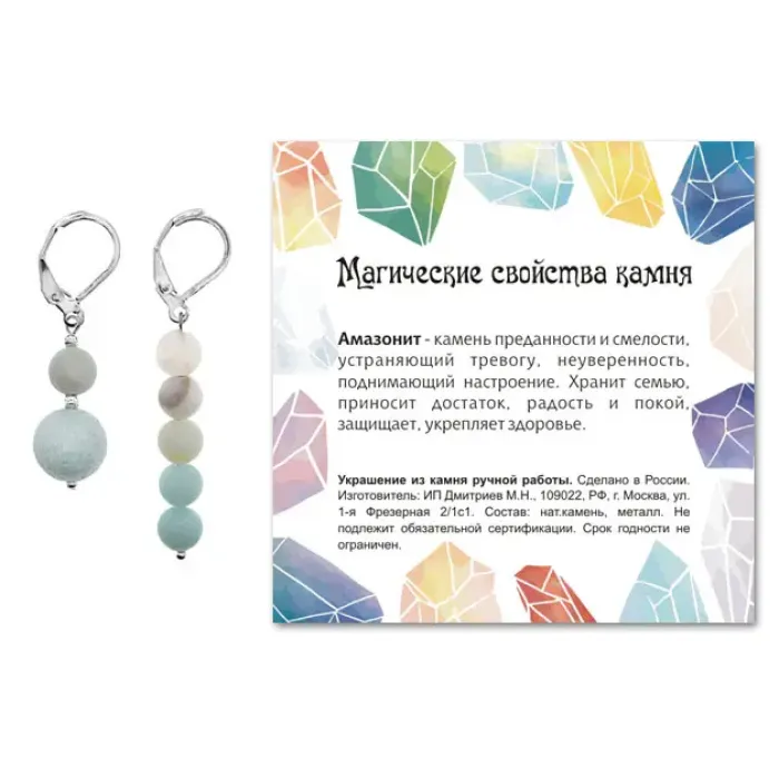 5. Упаковка включает прозрачный пакет с подвесом и вкладыш с описанием значения камня, что делает серьги отличным подарком для близких.