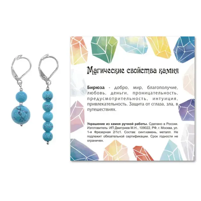 Асимметричные серьги Бирюза SEB03-06 — это стильный аксессуар, который добавит ярких акцентов в любой образ. Изготовленные вручную из синтетического камня бирюзы, эти серьги не только красивы, но и символизируют гармонию и спокойствие. Основные особенности: