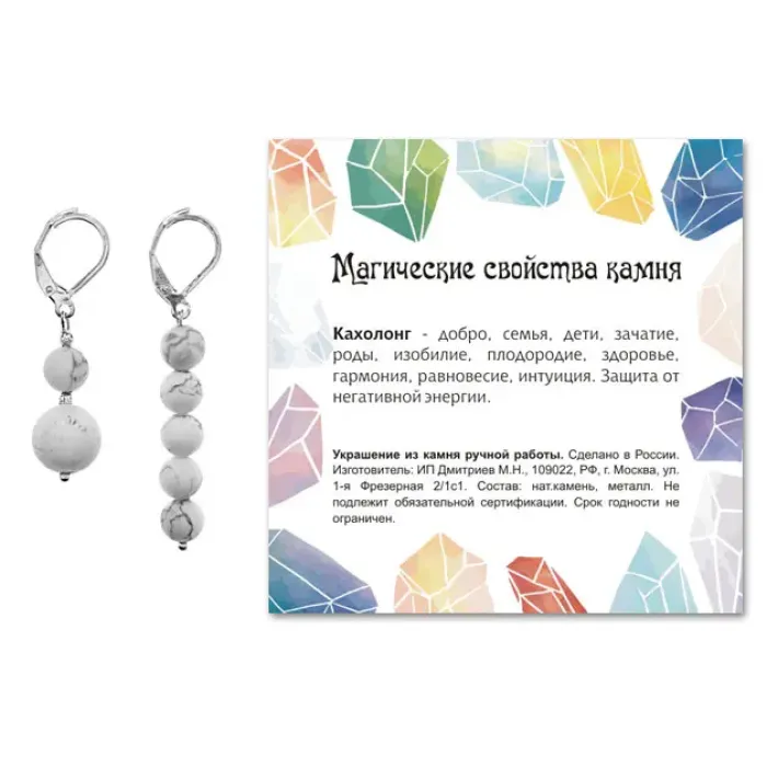 Асимметричные серьги Кахолонг — это уникальное украшение, созданное вручную из натурального камня. Эти серьги не только подчеркивают индивидуальность, но и несут в себе символику гармонии и спокойствия. Длина изделий составляет 38 мм и 48 мм, а диаметр бусин — 6 мм и 10 мм, что делает их элегантными и стильными. Фурнитура выполнена из бижутерного сплава с покрытием под серебро, обеспечивая долговечность и привлекательный внешний вид. Каждая пара упакована в прозрачный пакет с подвесом и комплектуется вкладышем с описанием значения камня, что добавляет дополнительную ценность этому изделию.