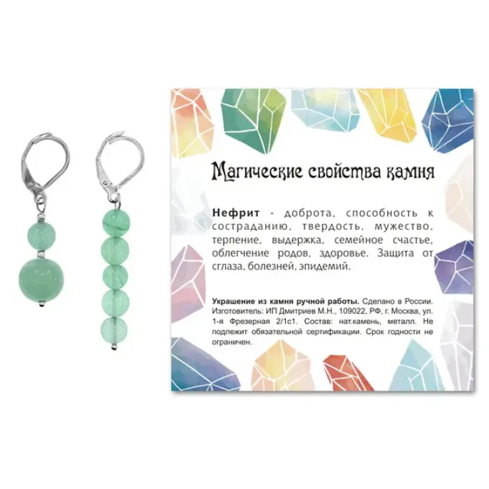- Упаковка включает прозрачный пакет с подвесом и вкладыш с описанием значения камня, что делает эти серьги отличным подарком.
