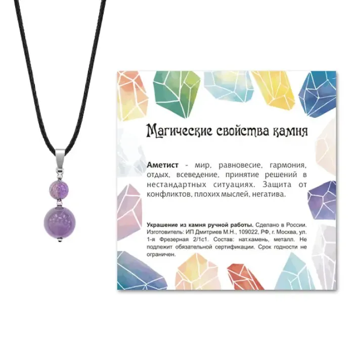 5. В комплект входит шнурок и вкладыш с описанием значения камня, что делает этот кулон отличным подарком для близких.