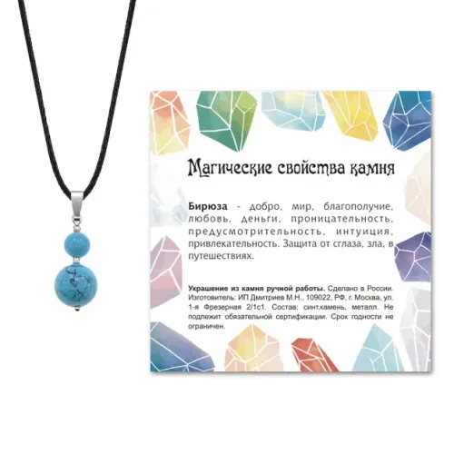Бирюза традиционно используется как амулет удачи и защиты, делая этот кулон не только красивым украшением, но и значимым талисманом.