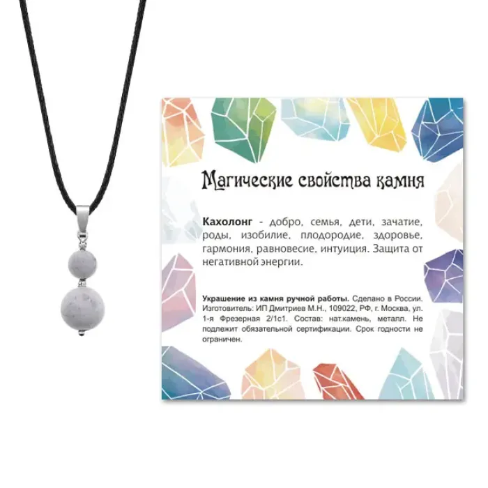 4. Упаковка включает прозрачный пакет с подвесом, шнурок и вкладыш с описанием значения камня для дополнительного понимания его свойств.
