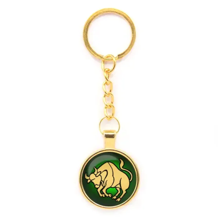 Брелок Знаки Зодиака - Телец является стильным аксессуаром, который символизирует стабильность и практичность. Изготовленный из бижутерного сплава с покрытием под золото, он привлекает внимание своим блеском и элегантностью.