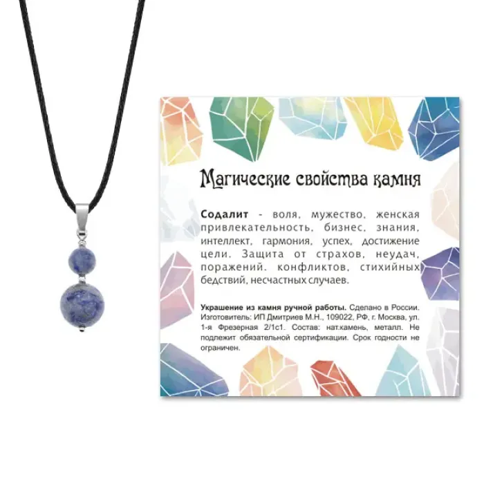 - Изготовлен из высококачественного натурального камня Содалит, который ценится за свои уникальные свойства.