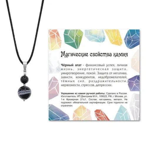 - Изготовлен из натурального чёрного агата, который традиционно ценится за свои защитные свойства.