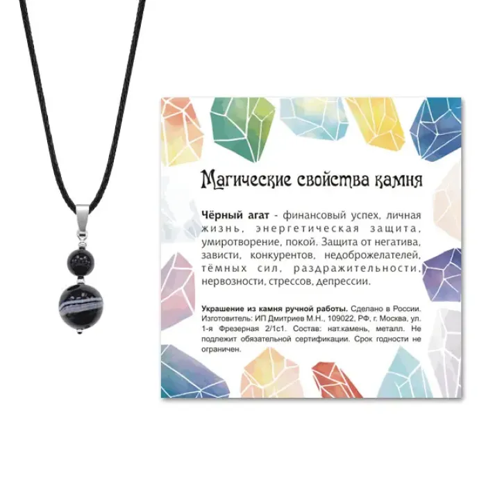 Кулон ручной работы из натурального камня Чёрный агат является не только стильным украшением, но и символом силы и защиты. Этот уникальный аксессуар прекрасно подходит для создания индивидуального образа.