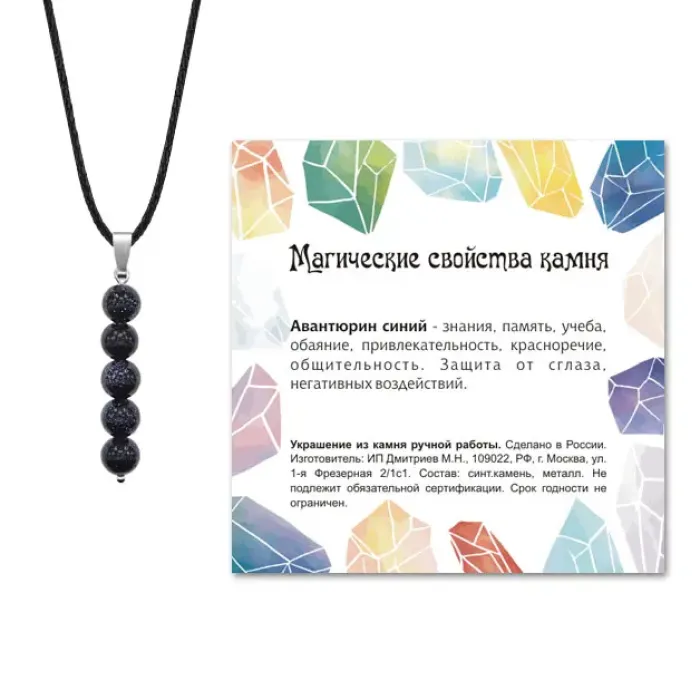 Кулон Авантюрин синий — это уникальное украшение, выполненное вручную из синтетического камня, известного своим глубоким синим цветом. Этот кулон не только привлекает внимание своей красотой, но и символизирует удачу и успех.