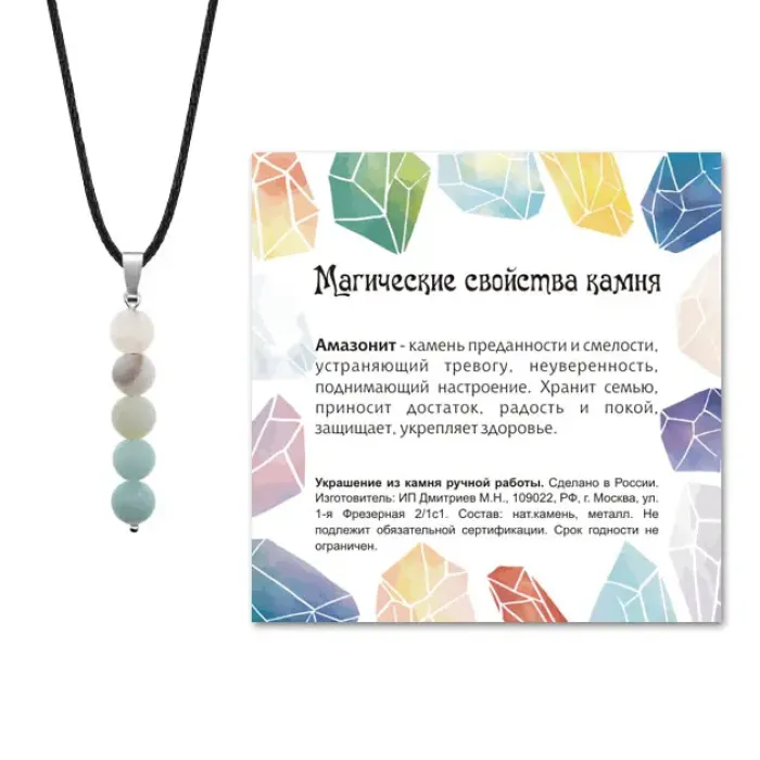 - Упаковка включает прозрачный пакет с подвесом и шнурок для удобства использования. В комплекте также имеется вкладыш с описанием значения камня, который добавляет дополнительную ценность изделию.
