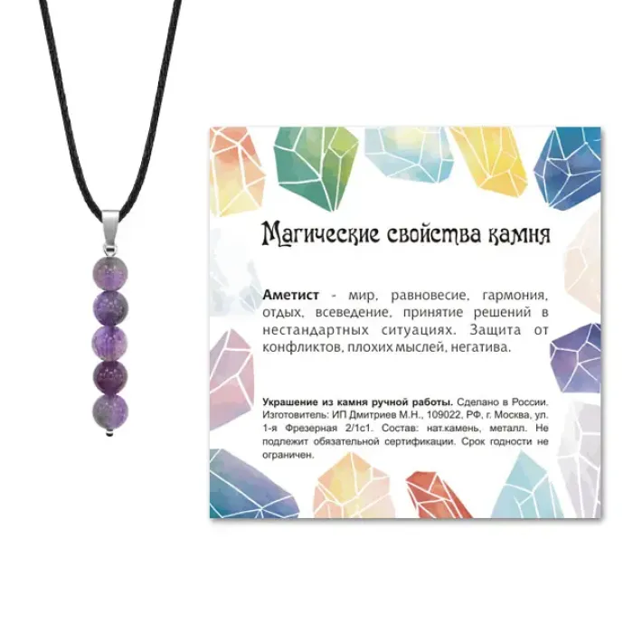 5. В комплекте также имеется вкладыш с описанием значения камня аметист, который традиционно ценится за свои свойства успокаивать ум и способствовать ясности мысли.
