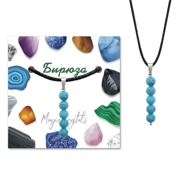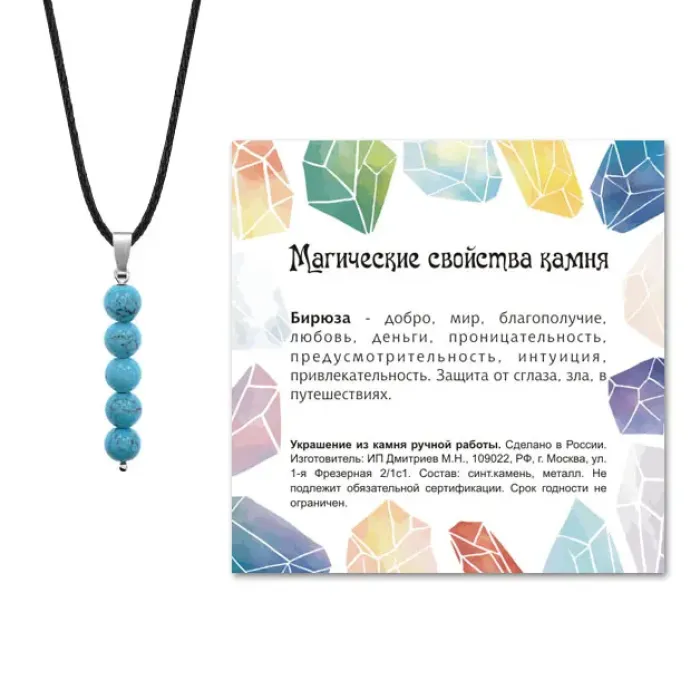 Кулон Бирюза KUL02-06 — это изысканное украшение ручной работы, выполненное из синтетического камня бирюзы. Этот кулон не только привлекает внимание своим ярким цветом, но и символизирует гармонию и защиту. Длина изделия составляет 40 мм (включая бейл), а диаметр бусин — 6 мм. Фурнитура изготовлена из бижутерного сплава с покрытием под серебро, что придаёт дополнительный блеск и стиль. Упаковка включает прозрачный пакет с подвесом, шнурок для ношения и вкладыш с описанием значения камня, что делает этот кулон отличным подарком или элементом личного стиля.