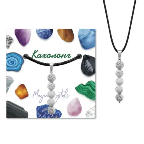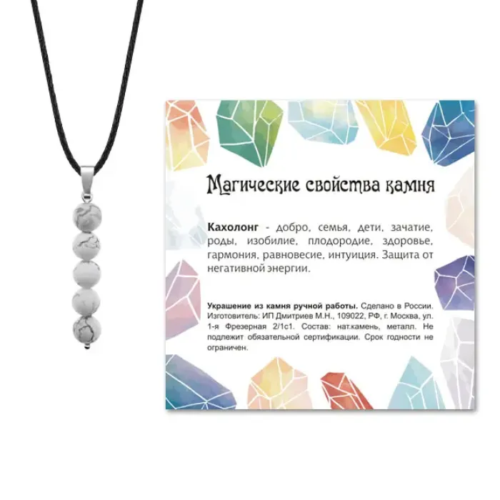 Кулон ручной работы из натурального камня Кахолонг — это не только стильное украшение, но и символ гармонии и душевного спокойствия. Этот кулон станет отличным дополнением к любому образу, подчеркивая индивидуальность и вкус. Основные характеристики включают длину 40 мм (включая бейл) и диаметр бусин 6 мм. Фурнитура выполнена из бижутерного сплава с покрытием под серебро, что придает изделию элегантный вид. Упаковка включает прозрачный пакет с подвесом, шнурок для ношения и вкладыш с описанием значения камня, что делает этот кулон прекрасным подарком для близких или себя. Кахолонг традиционно ценится за свои успокаивающие свойства и считается талисманом для тех, кто ищет внутренний покой.