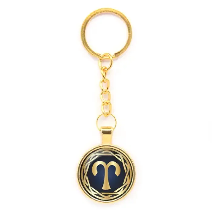 Брелок Знаки Зодиака - Овен символизирует силу и уверенность. Этот односторонний аксессуар выполнен из бижутерного сплава с элегантным покрытием под золото и дополнен выпуклой стеклянной линзой, что придаёт ему особый блеск. Компактный размер позволяет носить его как ключницу или украшение для сумки. Упаковка в прозрачный полипропиленовый пакетик делает его идеальным для подарка без лишних деталей. Традиционно такие брелоки ценятся за свою символику и могут стать отличным компаньоном в повседневной жизни.