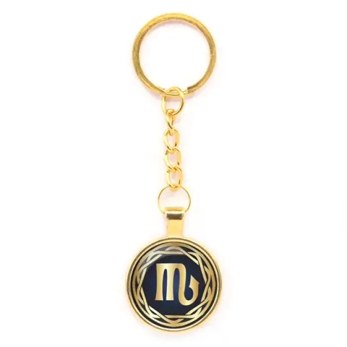 Брелок Знаки Зодиака - Скорпион является стильным аксессуаром, который символизирует силу и страсть этого знака. Изготовленный из бижутерного сплава с покрытием под золото, он привлекает внимание своим элегантным дизайном и выпуклой стеклянной линзой.
