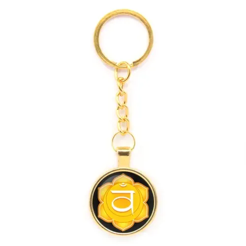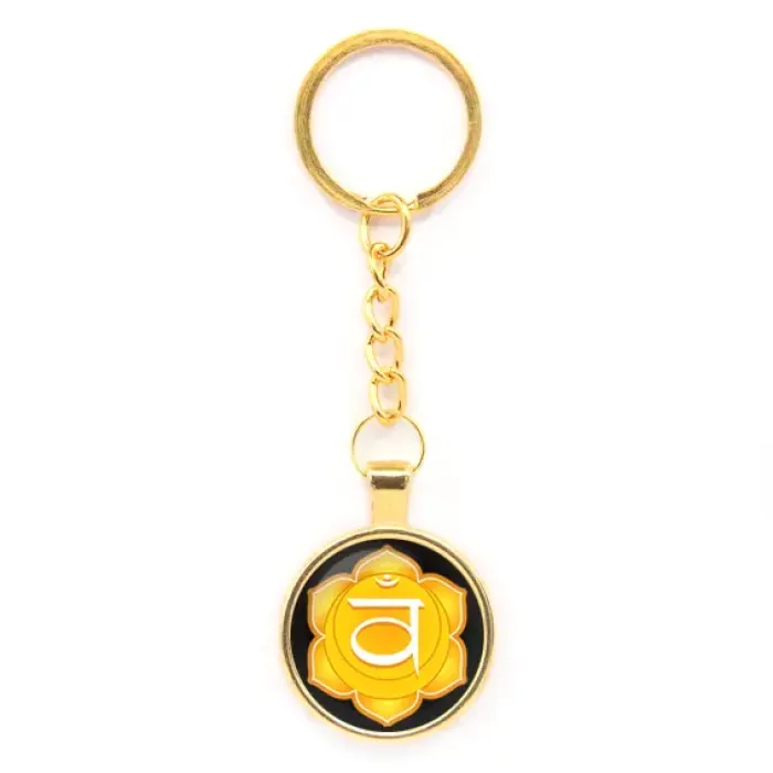 Брелок Свадхистхана чакра — это стильный аксессуар, который символизирует гармонию и баланс в жизни. Изготовленный из бижутерного сплава с покрытием под золото, он обладает элегантным внешним видом благодаря выпуклой стеклянной линзе.