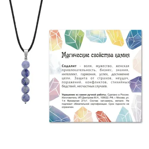 Кулон Содалит KUL02-19 — это изысканное украшение, выполненное вручную из натурального камня содалита. Этот камень традиционно ценится за свои успокаивающие свойства и глубокий синий цвет, который прекрасно дополнит любой образ.