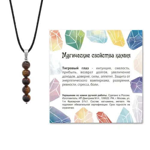 - Упаковка включает прозрачный пакет с подвесом и шнурок, а также вкладыш с описанием значения камня.