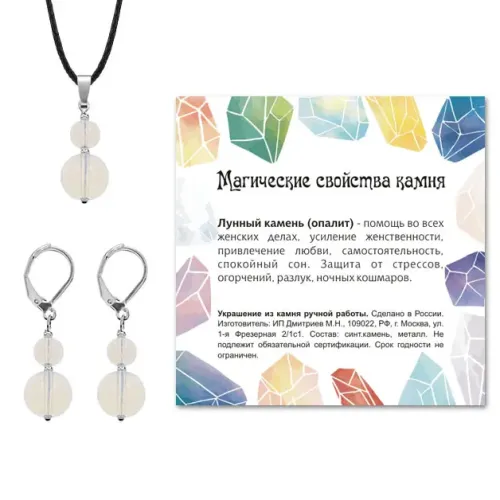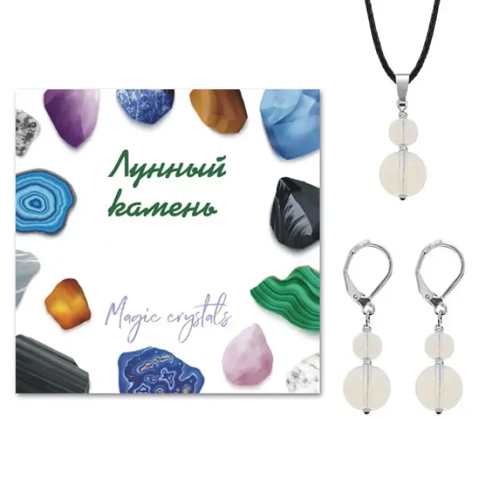 Лунный камень традиционно ценится за свои мистические свойства, что делает этот комплект не только украшением, но и символом внутреннего света.