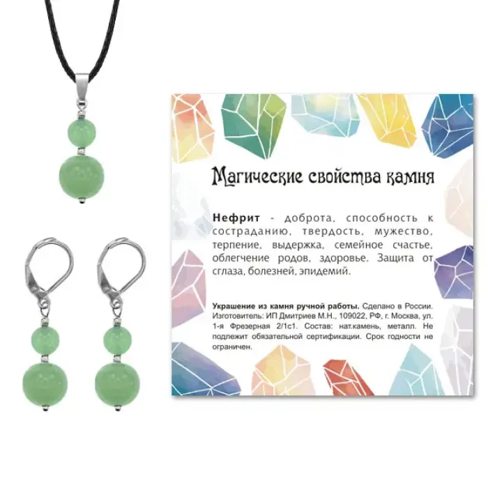 Комплект серьги и кулон из натурального камня Нефрит — это не только стильное украшение, но и символ гармонии и благополучия. Изделия ручной работы привносят в образ уникальность и утончённость.