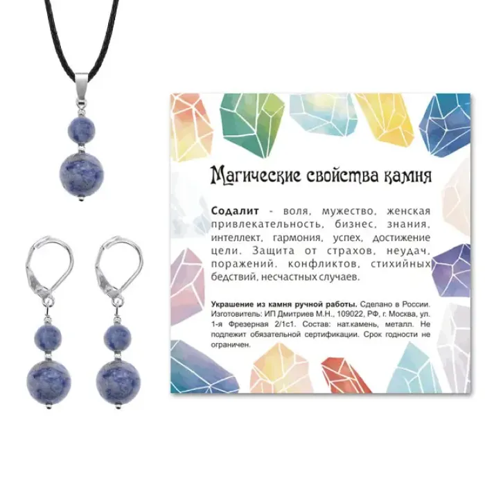 Комплект серьги и кулон, выполненные вручную из натурального камня Содалит, являются не только стильным аксессуаром, но и символом гармонии и спокойствия. Этот комплект станет отличным подарком для ценителей уникальных украшений.