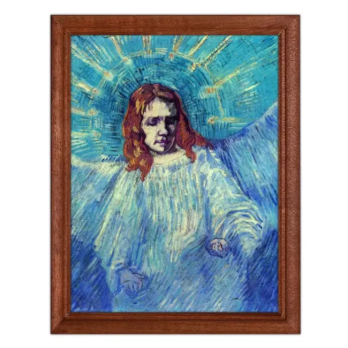 Постер в рамке с репродукцией картины Винсента Ван Гога «Полуфигура ангела», созданной по оригиналу Рембрандта.