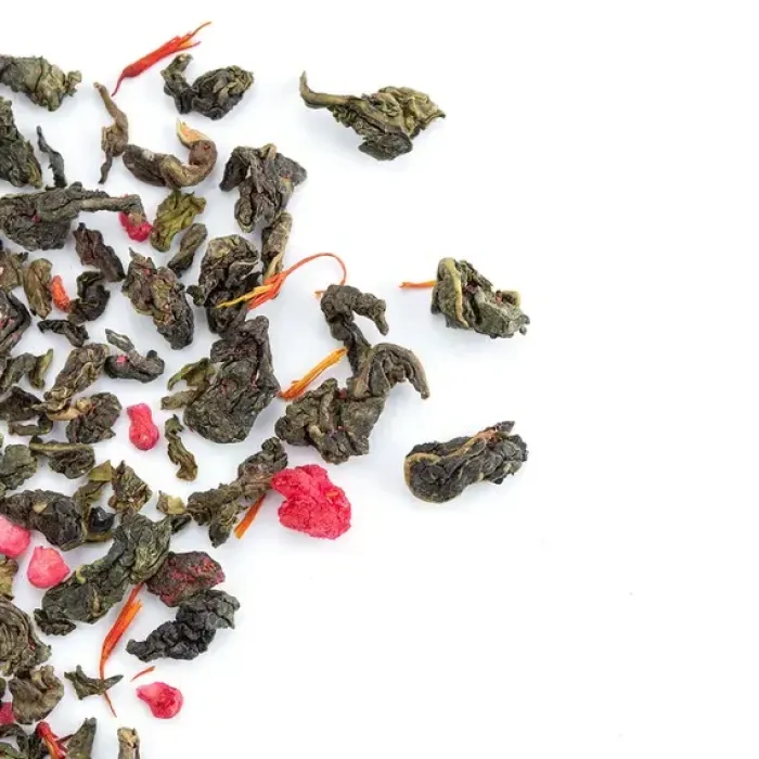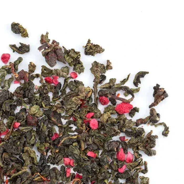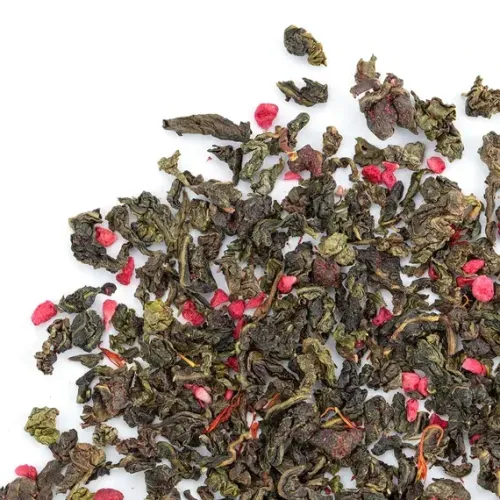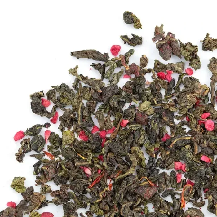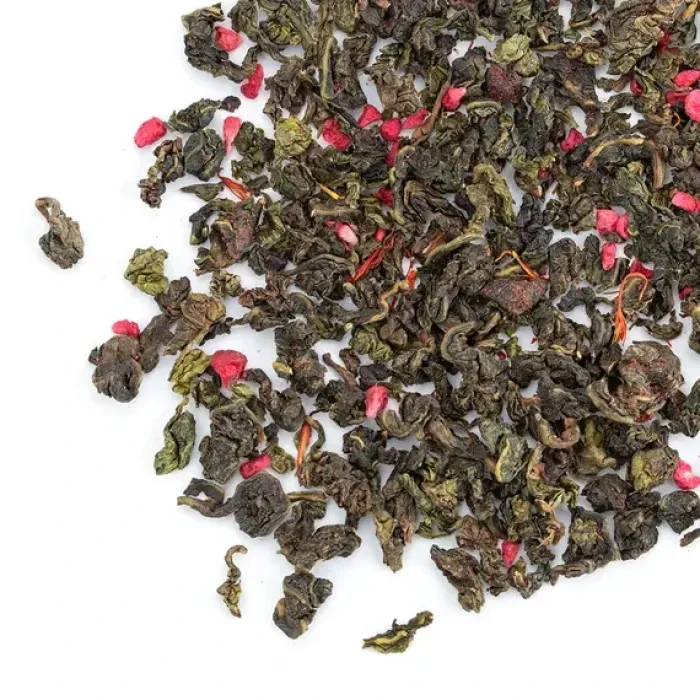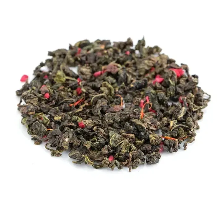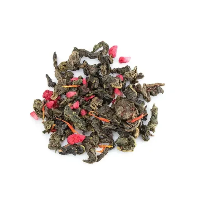Ароматный улун с добавлением спелой малины и лепестков сафлора. Мягкий, тонкий вкус китайского чая гармонично дополняется ягодной сладостью и свежим травянисто-цветочным ароматом.