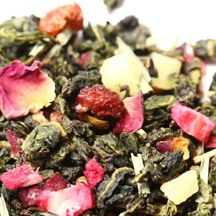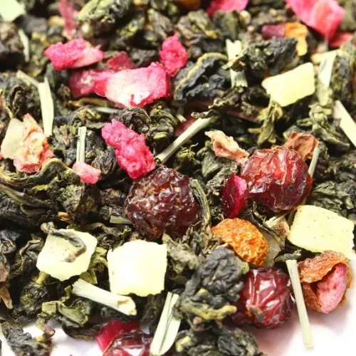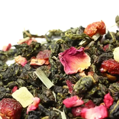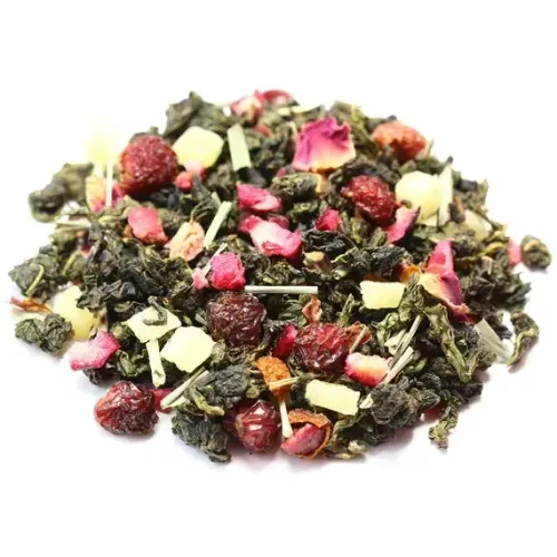 Ароматизированный китайский улун с ярким фруктово-ягодным характером. В основе — классический полуферментированный чай, обогащённый кусочками тропических фруктов (ананас), ягод (клюква, шиповник) и цветов, что создаёт насыщенный вкус с нотами клюквы и сладкий аромат земляники и черимойи.