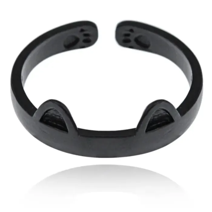 Безразмерное кольцо с дизайном «Кошачьи ушки» в чёрном цвете.