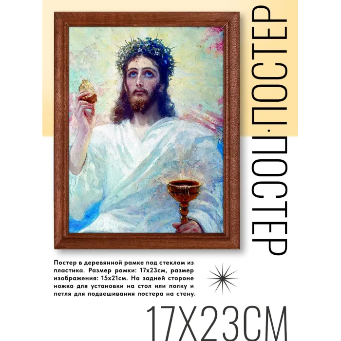 Постер в рамке 17х22см Илья Ефимович Репин - Христос с чашей (1894) POSV-0153