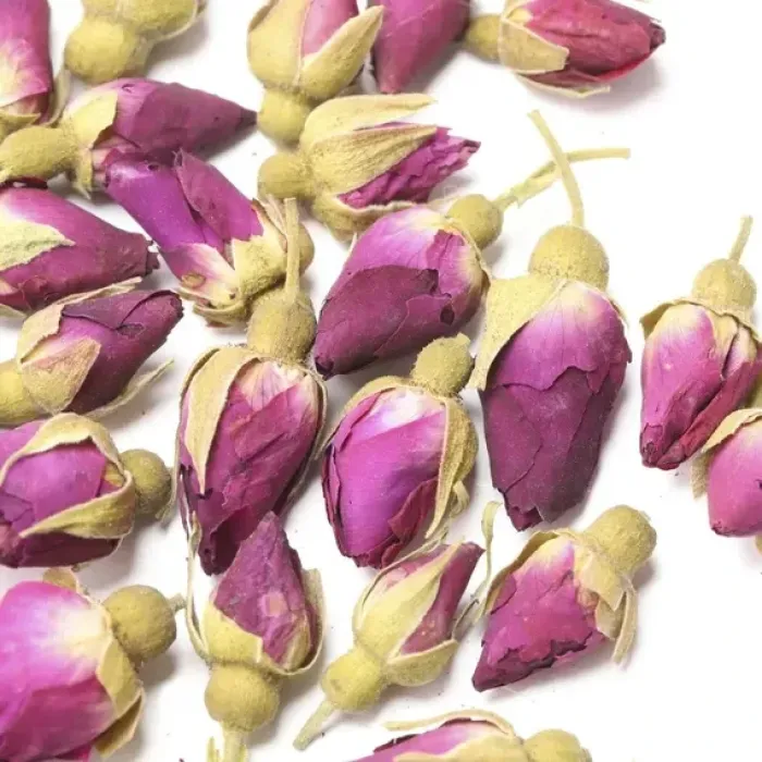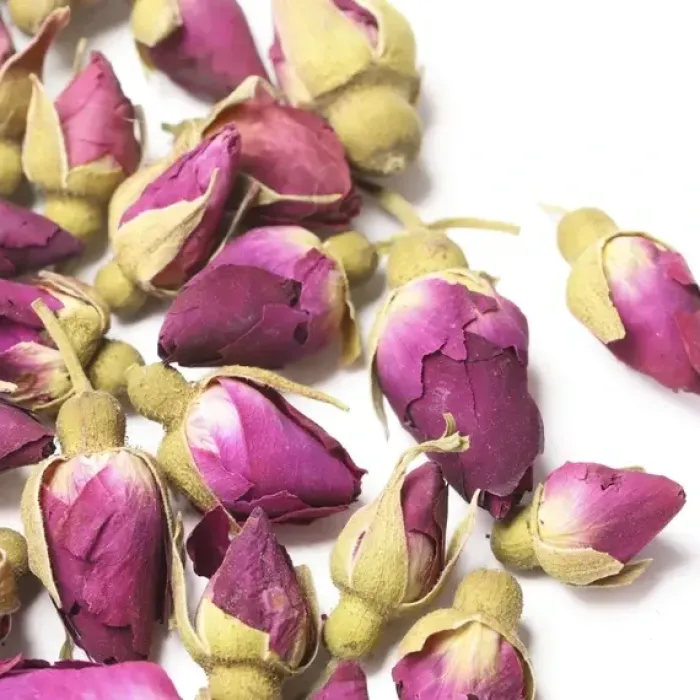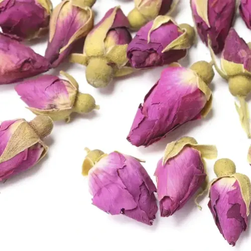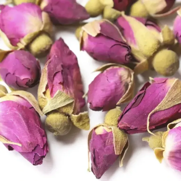 Бутоны розы Мэй Гуй Хуа Бао — классическая китайская добавка для обогащения чая. Их насыщенный цветочный аромат с яркими нотами эфирных масел придаёт напитку изысканный характер, способствуя расслаблению и успокоению.