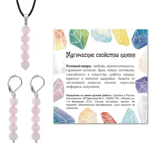 Комплект серьги и кулон из натурального камня Розовый кварц — это не только стильное украшение, но и символ любви и гармонии. Изготовленные вручную, эти аксессуары привносят в образ нежность и утончённость.