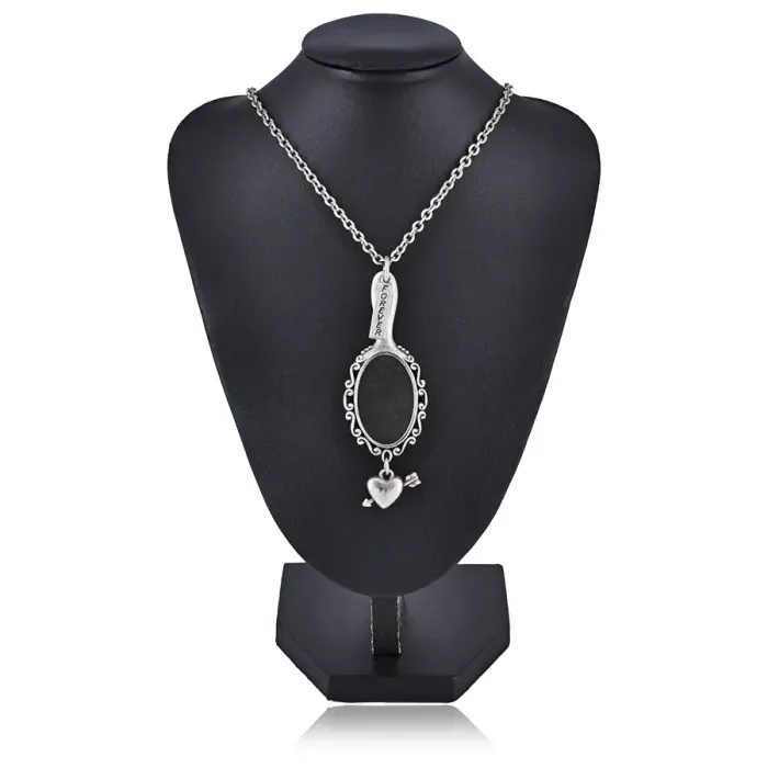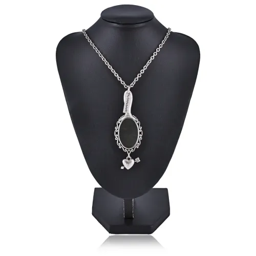 Металлический кулон с зеркальной вставкой и регулируемой цепочкой.