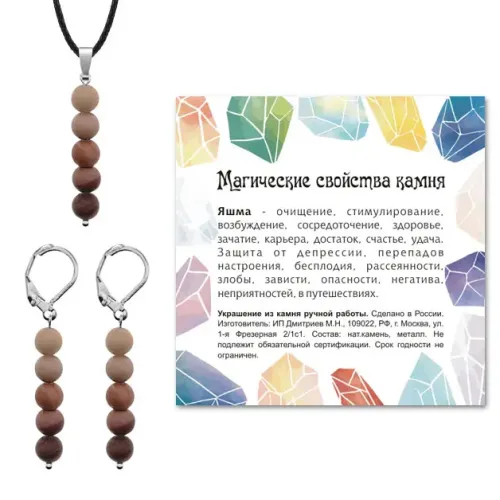 Яшма имеет глубокие культурные корни и считается символом стабильности и гармонии. Этот комплект станет прекрасным дополнением к любому образу.