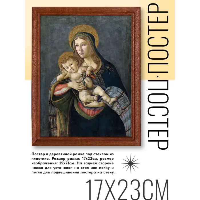 Постер в рамке 17х22см Сандро Боттичелли - Мадонна с Младенцем с терновым венком и тремя гвоздями POSV-0159