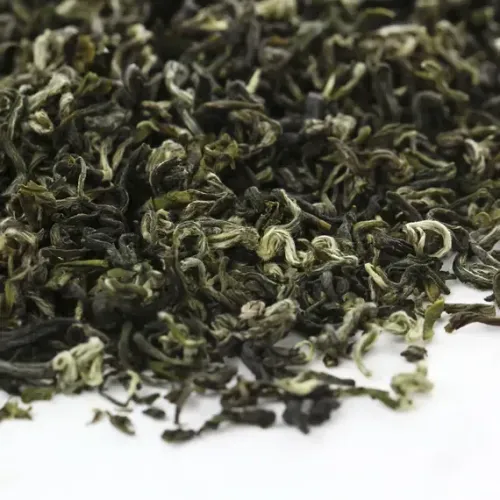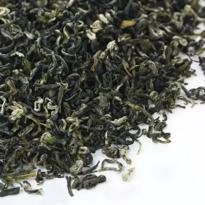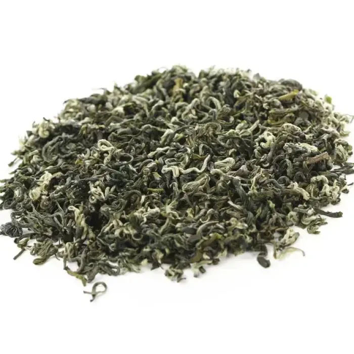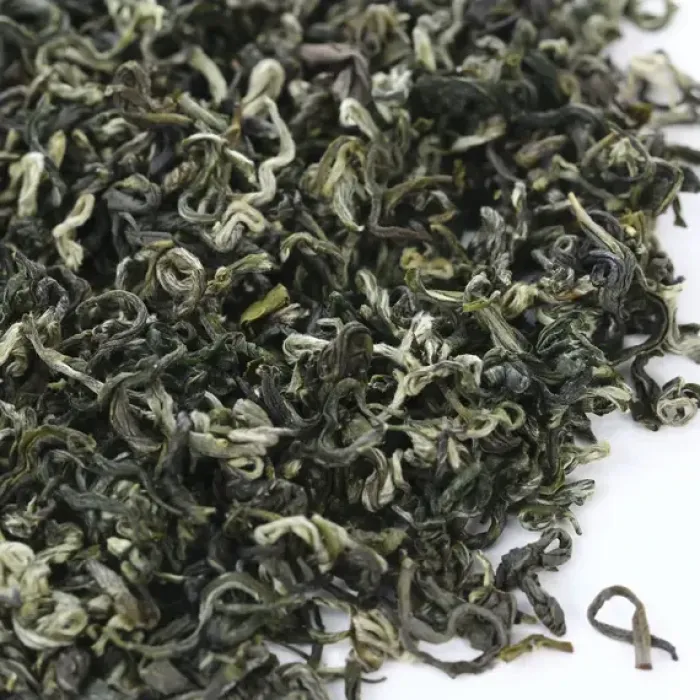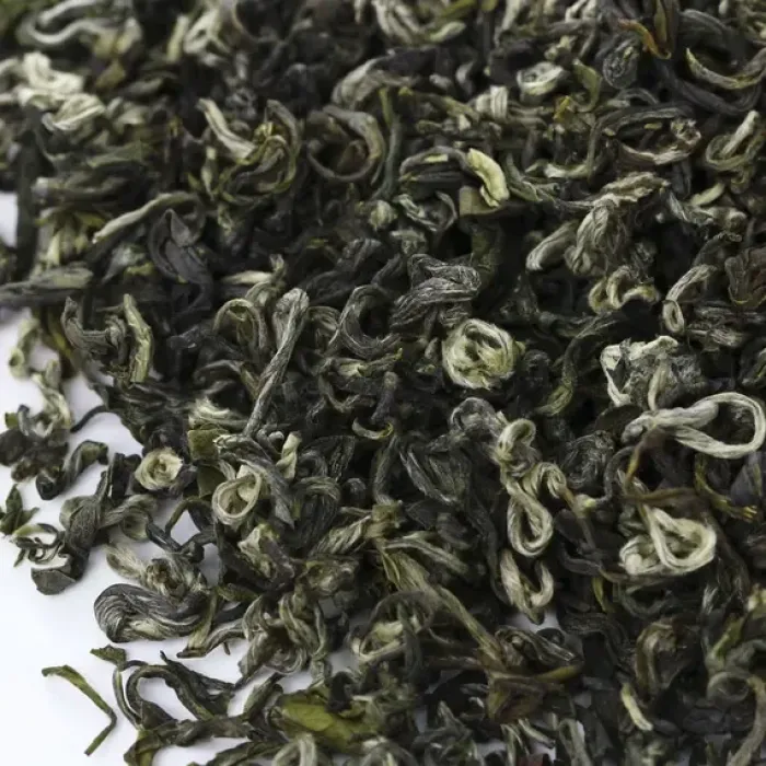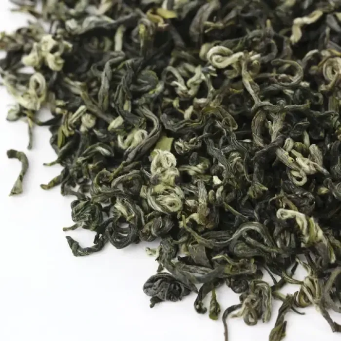 Знаменитый китайский зелёный чай, известный своими тонкими спиральками из почек и листьев. Родом из провинции Цзянсу, он обладает свежим, цветочно-травянистым ароматом с нотами тыквенных семечек и ягод, а его вкус — свежий, с лёгкой терпкостью и сладким послевкусием.