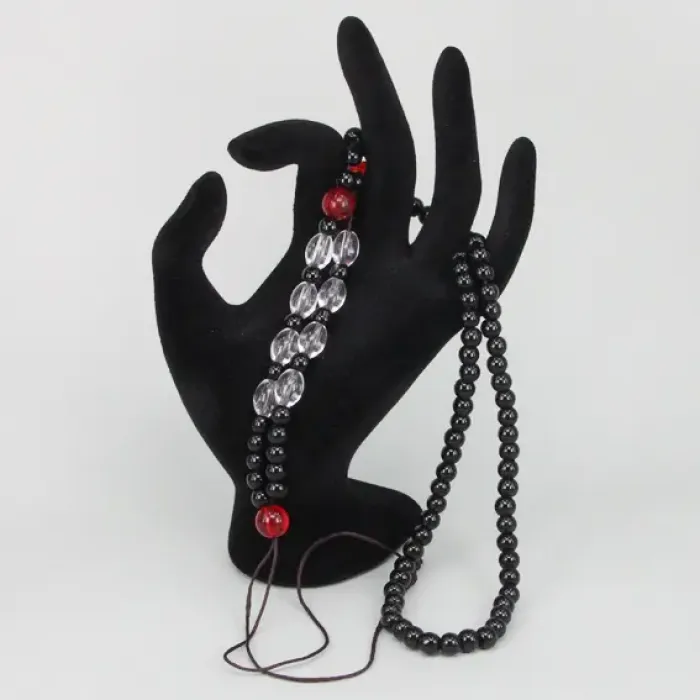 Четки для амулета (кулона), пластик, прозрачные и черные бусины SH014