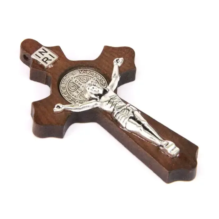 Кулон с распятием из дерева и металла. Размер 35х58 мм.