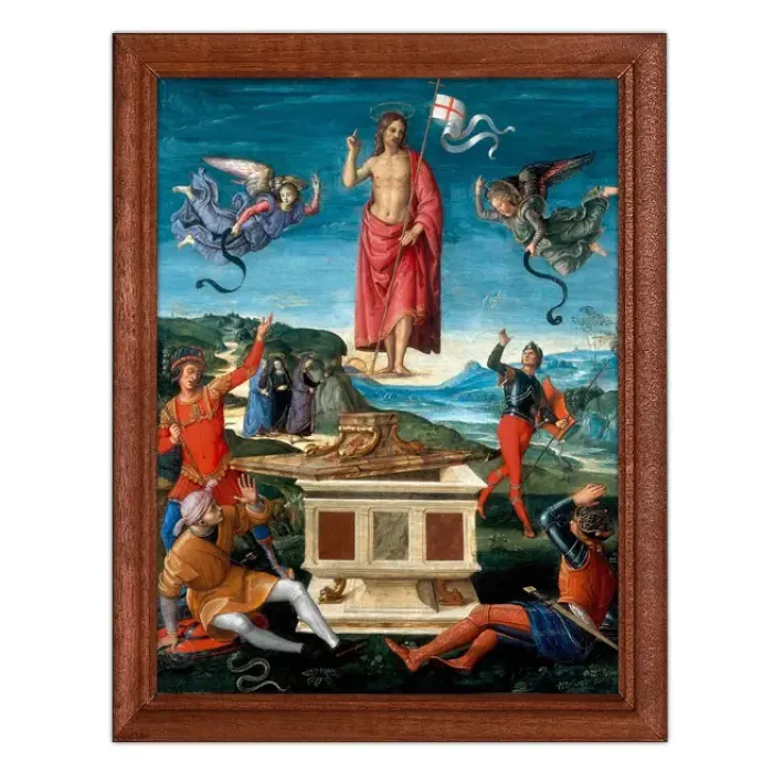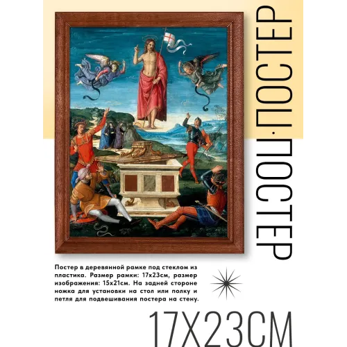 Постер в рамке с репродукцией картины Рафаэля Санти «Воскресение Христа» станет изысканным элементом декора. Этот художественный объект не только украсит интерьер, но и подчеркнёт культурное наследие эпохи Ренессанса.