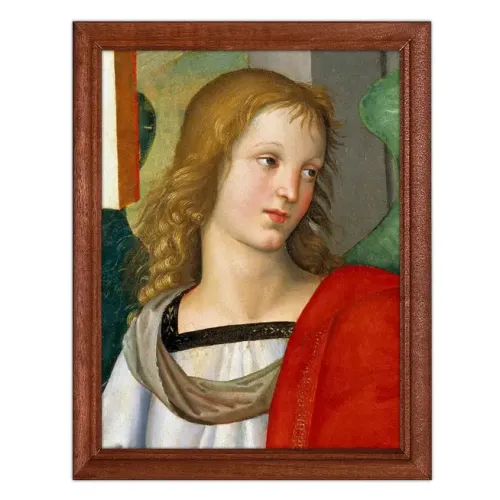 Постер в рамке с изображением 'Ангела' работы Рафаэля Санти — это изысканный элемент декора, который привнесет атмосферу искусства и элегантности в любое пространство. Репродукция выполнена на высококачественной бумаге и оформлена в деревянную рамку, защищенную пластиковым стеклом.