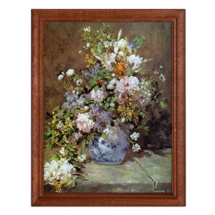Постер в рамке с репродукцией картины "Весенний букет" известного художника Пьера Огюста Ренуара станет изысканным элементом декора. Этот стильный аксессуар придаст уют и атмосферу художественности любому пространству, будь то салон, магазин или жилое помещение.