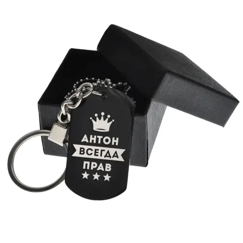 Размеры и комплектация: Размер 49х28 мм. В комплекте кольцо для ключей, шариковая цепочка с регулировкой длины, подарочная коробка.