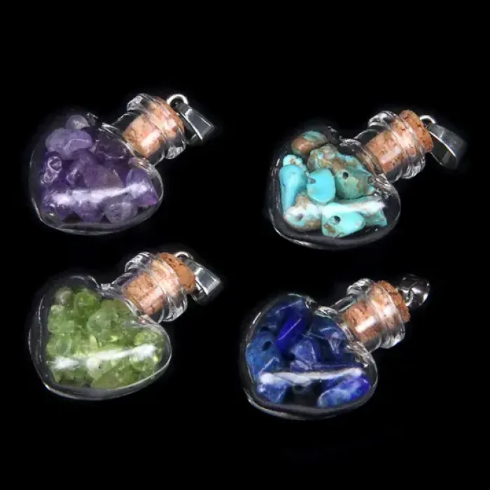 Кулон-флакон Сердечко 3,5 см с натуральными камнями в ассортименте