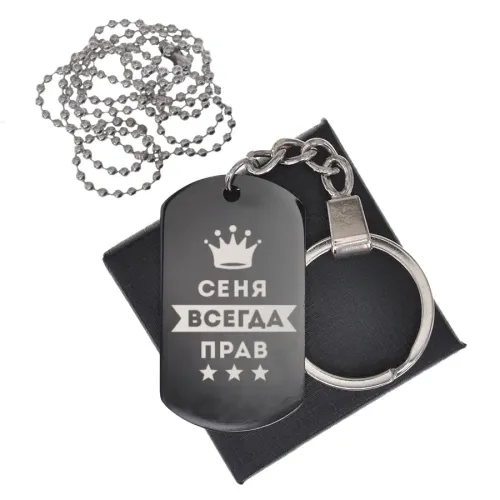 Размеры и комплектация: Размер 49х28 мм. В комплекте кольцо для ключей и шариковая цепочка с регулировкой длины. Упаковка — подарочная коробка.