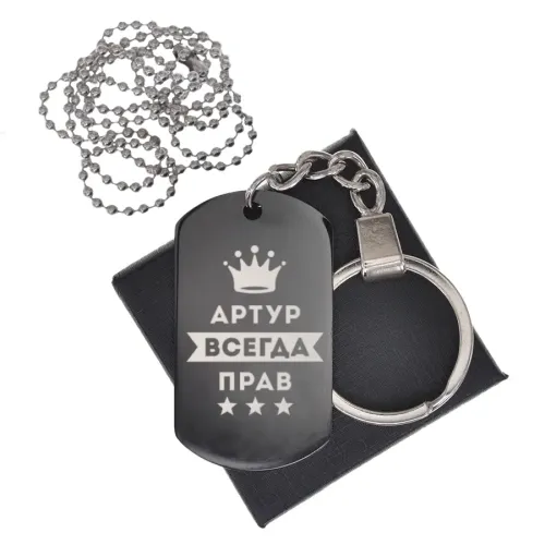 Именной сувенирный жетон «Артур Всегда прав» выполнен из нержавеющей стали с чернением и гравировкой.