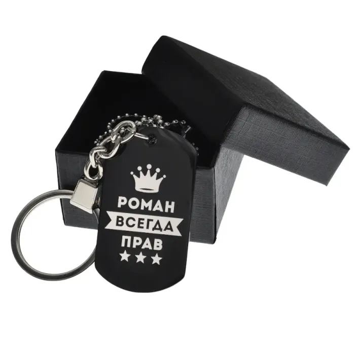 Размеры и комплектация: Размер 49х28 мм. В комплекте кольцо для ключей и шариковая цепочка с регулировкой длины.