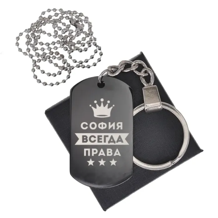 Именной черный жетон "София Всегда права" выполнен из высококачественной полированной нержавеющей стали с эффектным чернением. Этот стильный аксессуар станет отличным подарком, который подчеркнет индивидуальность и оригинальность.