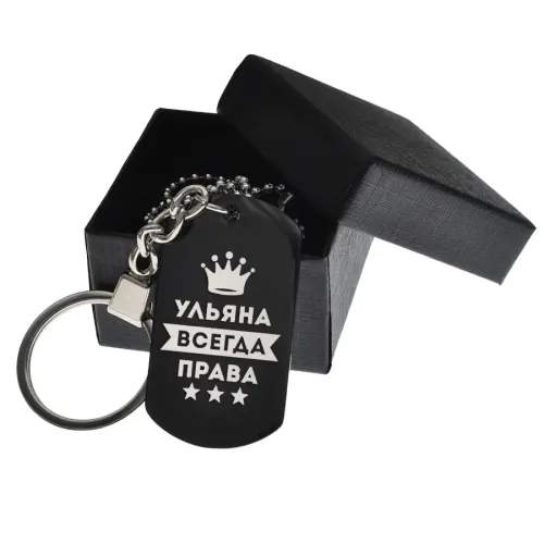 Именной сувенирный жетон «Ульяна Всегда права» выполнен из нержавеющей стали с чернением и гравировкой.